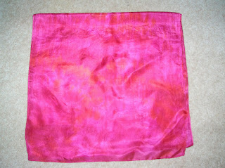 Long pink scarf with burgundy bits, overdyed with the remnants of the red orange dye bath.