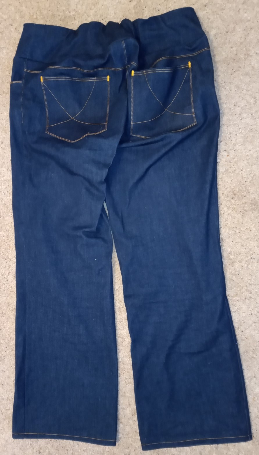 Took the last 45 mins to unpick enough of the overlocking, 2 lots of straight stitching and a load of zig zagging to be able to shorten the elastic by 2 inches and resew it all back together. That has now eliminated that little back gap I had and the jeans are staying up better.